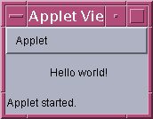appletviewerapplication that comes with the JavaTM Platform. To view theHelloWorldapplet usingappletviewer, enter at the prompt: