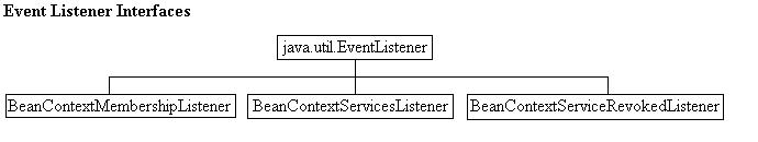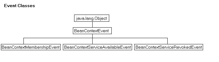java.beans.beancontext, take a minute to look over the following hierarchy diagram. You will notice that the majority of the package is defined as interfaces, which allow for multiple inheritance.Inheritance Diagram of the BeanContext API