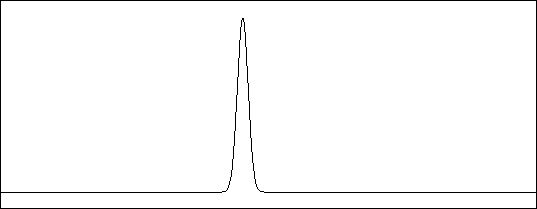 Rysunki: wykres kwadratu modułu funkcji falowej dla kx = 0.5, 1, 1.5 i 2 jednostek atomowych. Oś odciętych - położenie x.