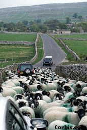 Sheep Block Road, October 22, 1995 Malham, Yorkshire Dales, North Yorkshire, England, UK Sheep block a country road in Malham in the Yorkshire Dales of England, preventing cars from passing. Patrick Ward (www.corbis.com, Image ID: PW001045) | |