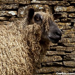 Wensleydale Sheep Beside Wall ca. 1985-1995, Yorkshire Dales, England, UK A Wensleydale sheep stands against a stone wall. Robert Dowling (www.corbis.com, Image ID: RD001468) | |