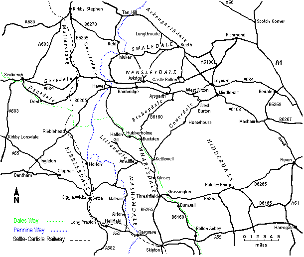 | The Yorkshire Dales has outstanding scenery, a diversity of wildlife habitats, a rich cultural heritage and peacefulness. In 1954, 1769 square kilometres was designated a national park in recognition of these most important qualities. The Dales lie astride the Pennines in the north of England in the counties of North Yorkshire and Cumbria. There are over 20 main dales, differing much from each other in character and atmosphere. To the south of the area lies a highly populated industrial area while to the north thinly settled uplands stretch to the Tees and beyond. About 20,000 people live in the scattered farms, villages and small market towns of the Dales. |